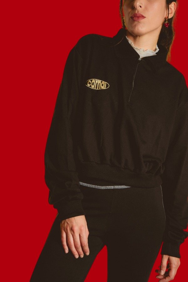 Buzo de rústico crop mega suave con cuello tejido acceso con medio cierre y puños y cintura en rib a tono. Un clásico para poder estar cómodo sin perder el estilo.