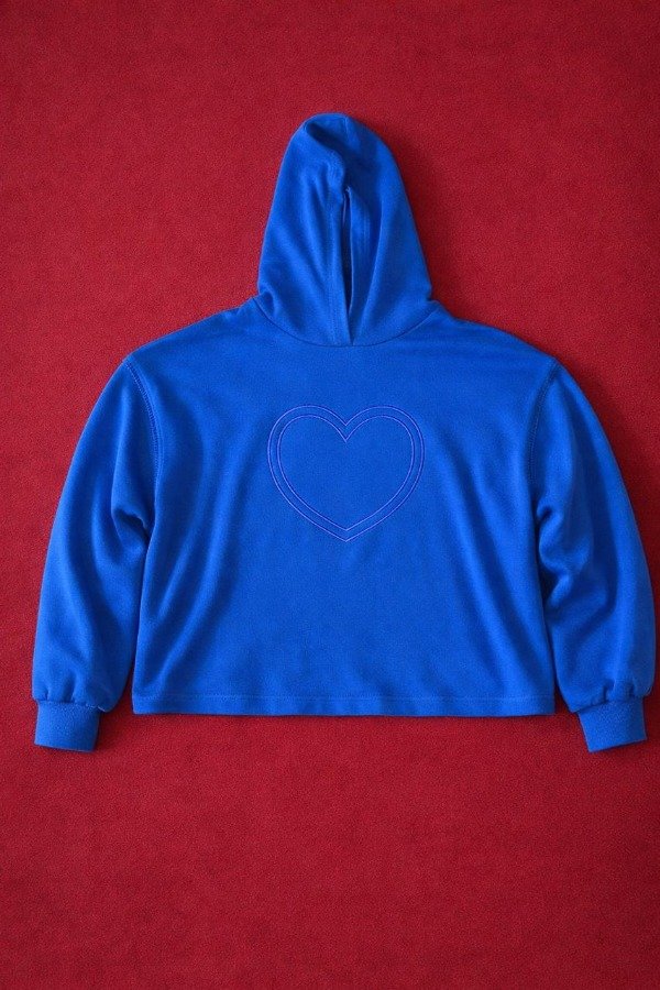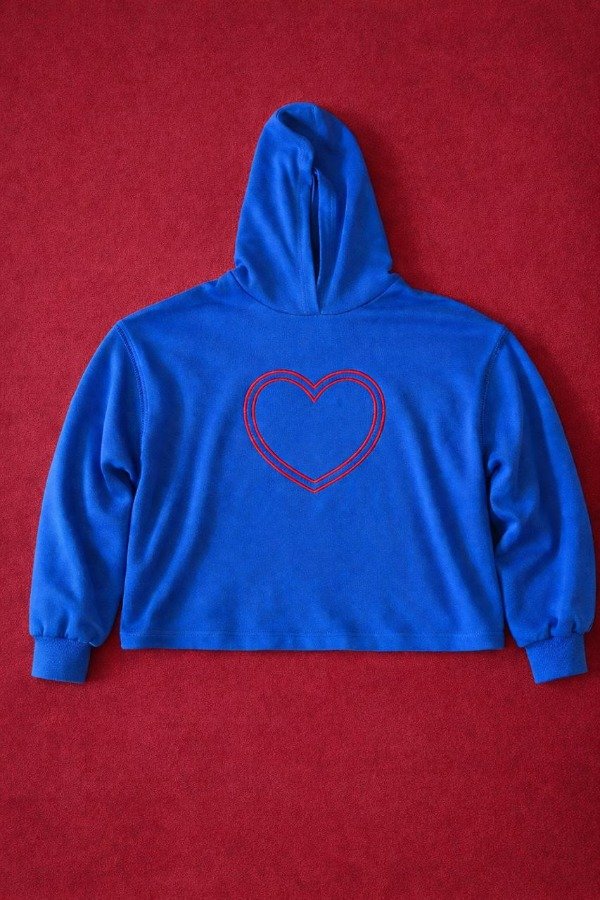 Buzo Boxy fit de algodón con lycra sin frisa, una suavidad de otro planeta con bordado en forma de corazón y costuras expuestas en mangas.