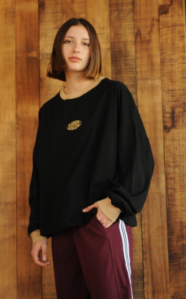 Camiseta manga larga de algodón Peinado, muy suavecito al tacto, con Rib a contra tono al igual que el bordado del centro. Una prenda para todos los días! Cómoda, canchera y súper liviana. Para que este invierno las primeras pieles se luzcan!
