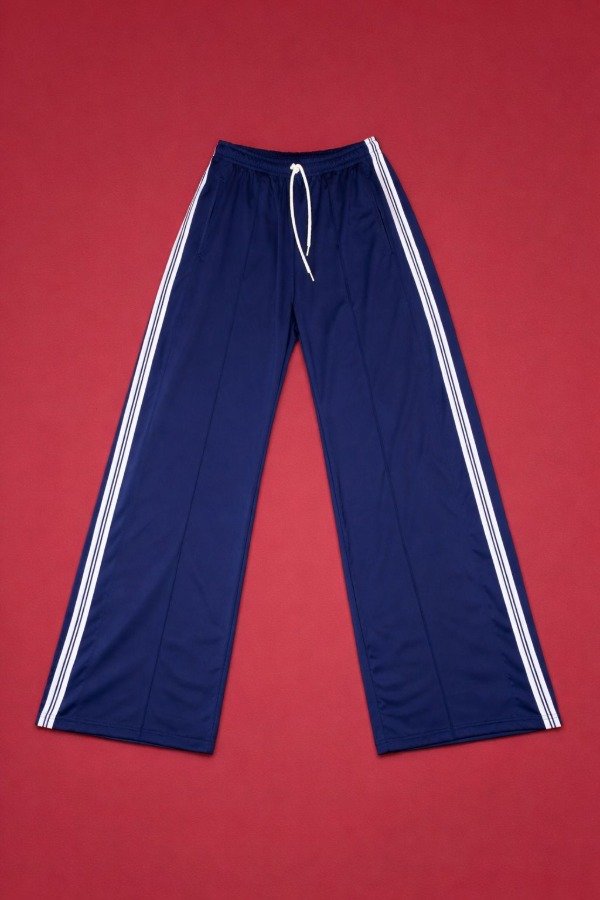 Pantalón palazo de tela deportiva premium. con vivos laterales tejidos, bolsillos y costuras reforzadas.