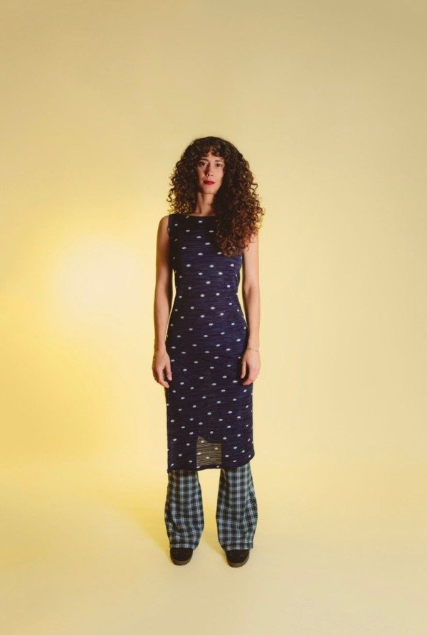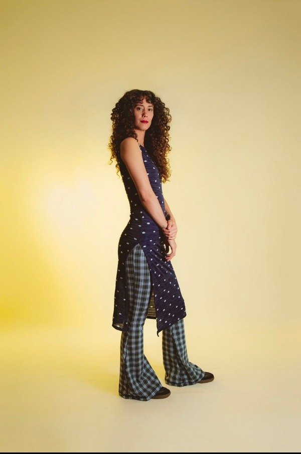 color chocolate, cuadrille y negro son de algodón y lycra