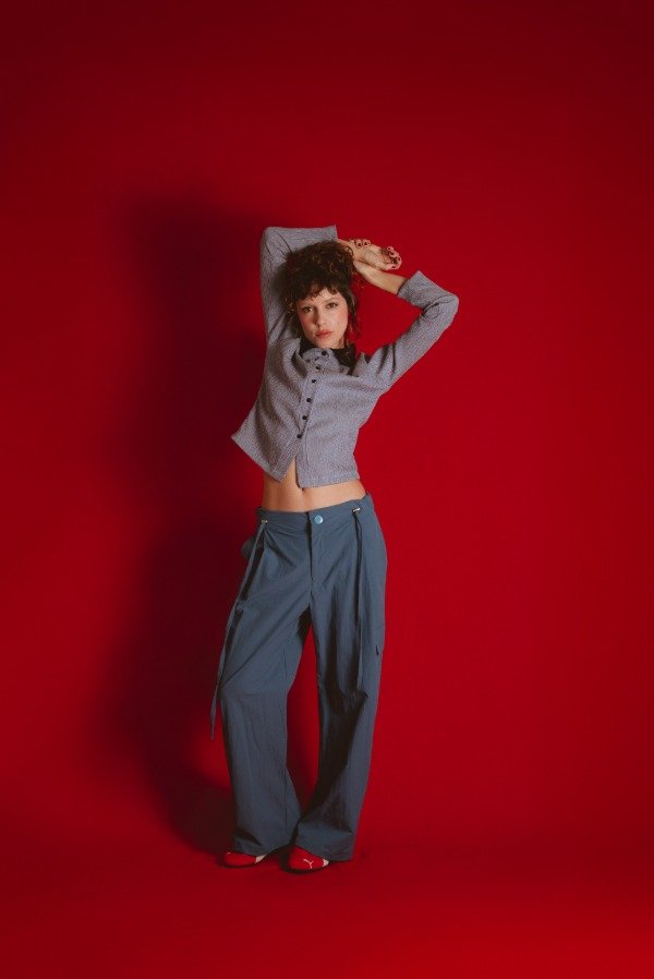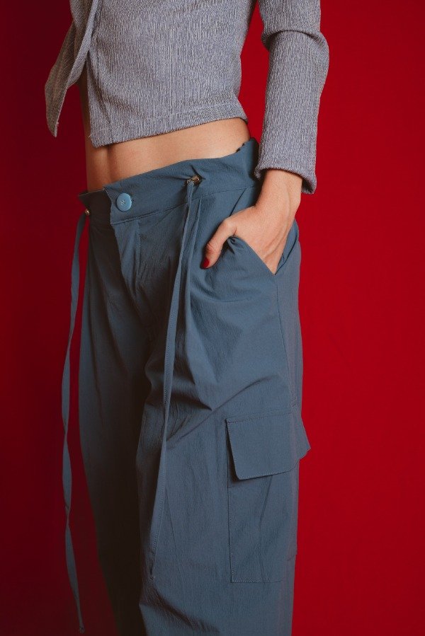 Pantalón cargo con cintura regulable por dos tiras, que te permite usarlo tiro alto, medio o bajo, súper adaptable a todos los cuerpos, tiene pinzas delanteras y bolsillos laterales.