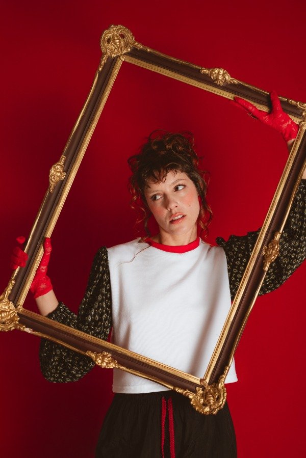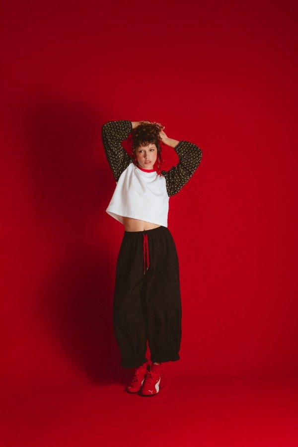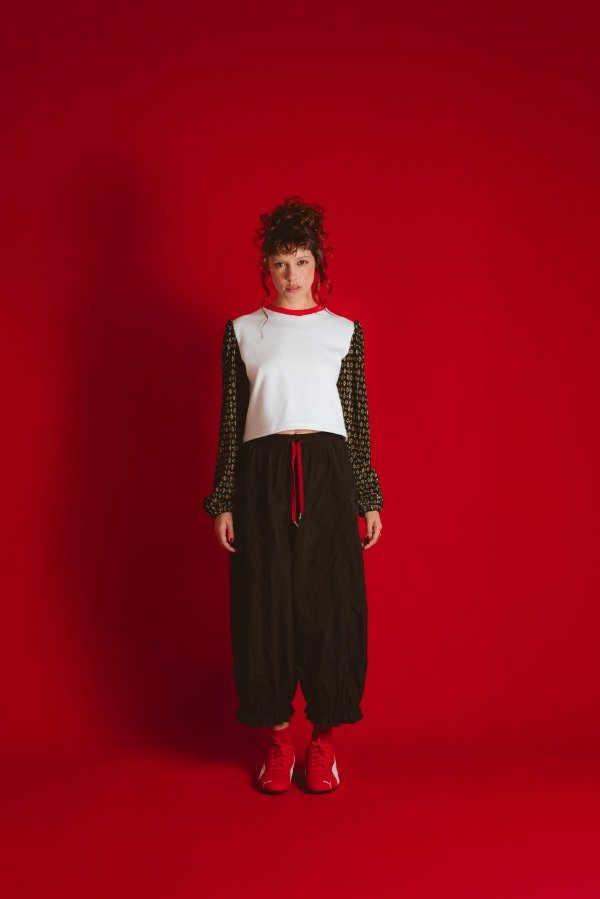 Camiseta de interlock super suavecita, con cuello de rib en rojo y mangas princesa en tela plisada la cual eleva la prenda y te hace sentir una reina total. Cómoda y atrevida, un diseño único, proba usarla y contanos cuantas veces te preguntan de donde es???