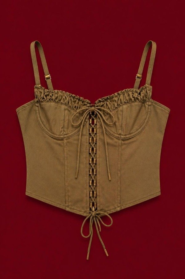 Corsete de bengalina con tiras elásticas regulables y aro.