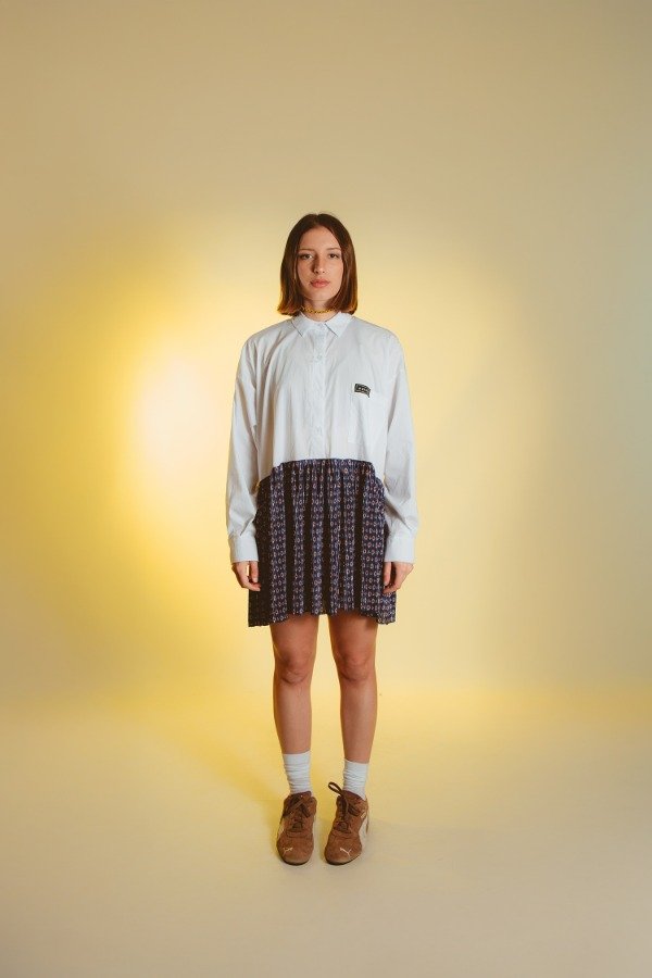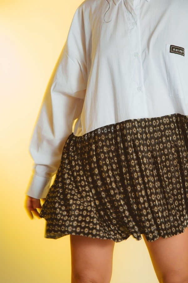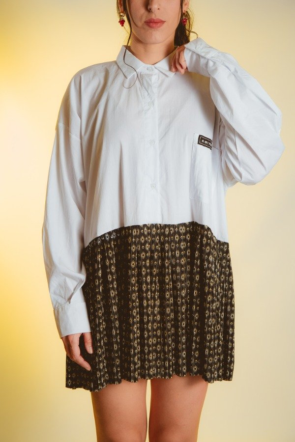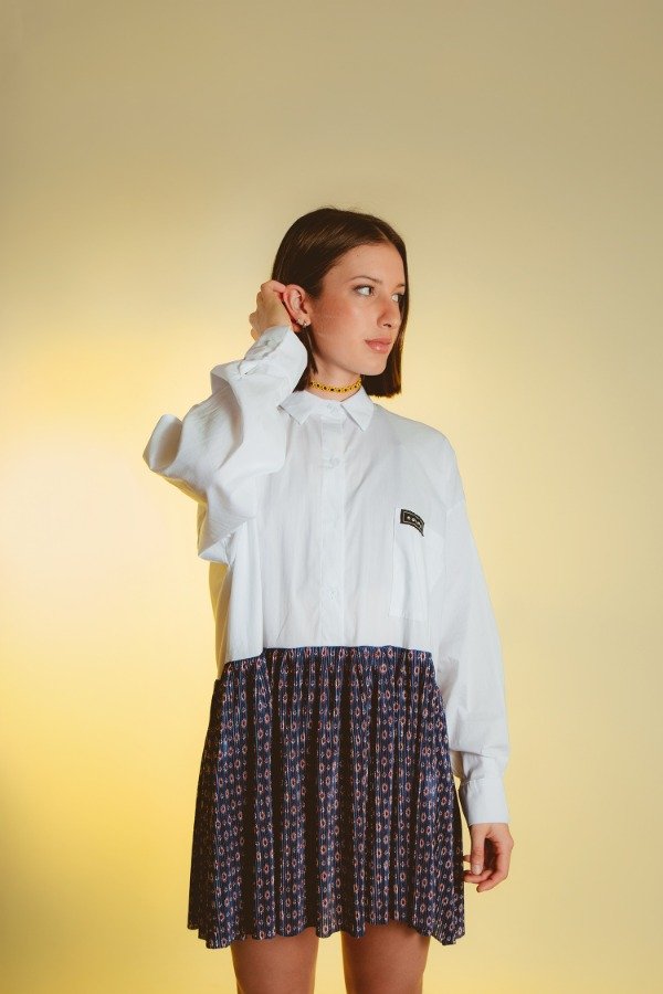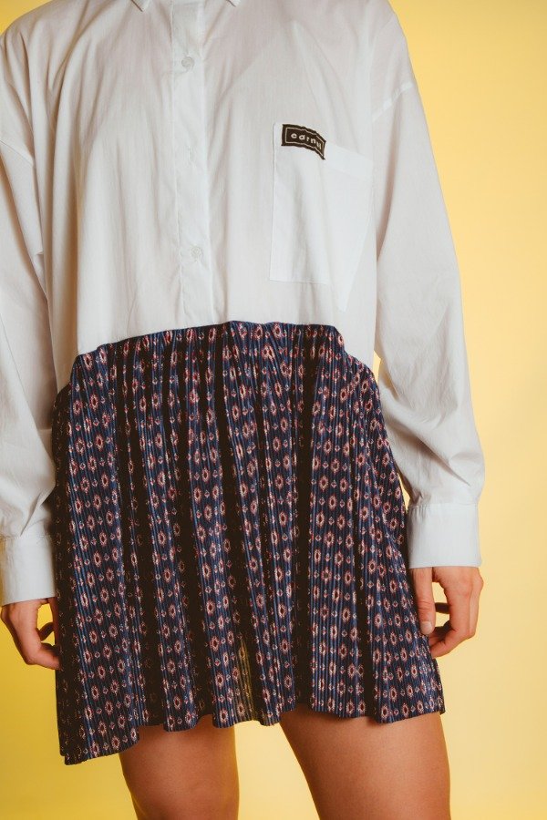 Vestido camisero unico e irrepetible, combina la parte superior de nuestra camisa recoleta y en la parte inferior una falda plisada de seda. Lo podes usar cerrado como en las fotos o abierto tipo kimono. Es super comodo y fresco, ideal para estas noches de primavera :)