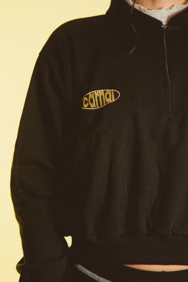 Buzo de rústico crop mega suave con cuello tejido acceso con medio cierre y puños y cintura en rib a tono. Un clásico para poder estar cómodo sin perder el estilo.