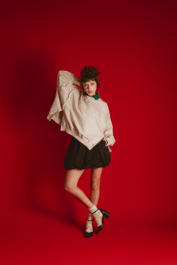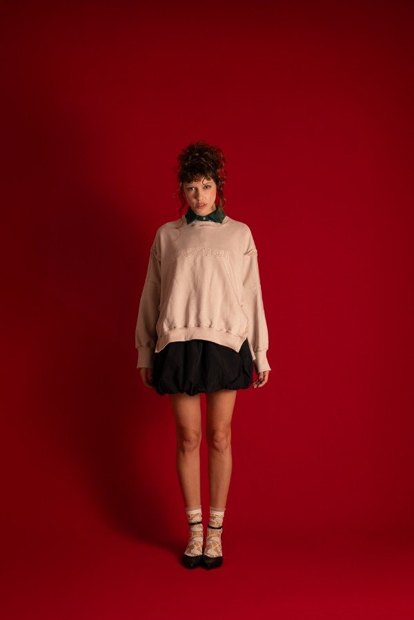 Buzo corte oversize de rústico con cuello puño y cintura en rib a tono. Con costuras del revés y tajos en el frente, único cómodo y muy canchero,