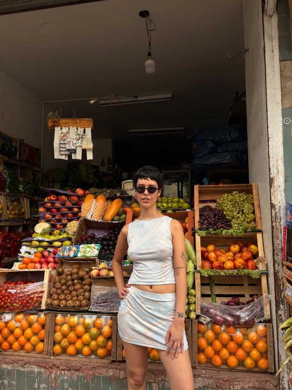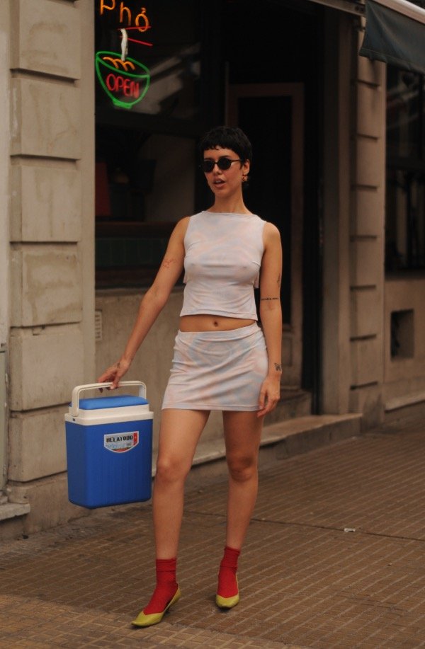 Falda de microfibra con spandex estampa lavada tipo batik. Muy playera y liviana ;)