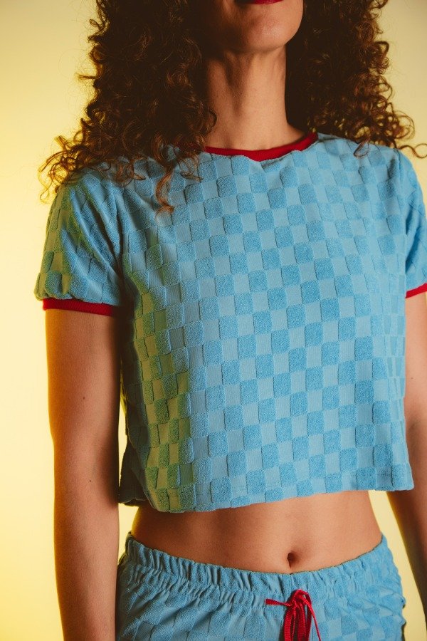Remera crop cuadrada de towel texturado, un género único que no vas a encontrar en otro lado!